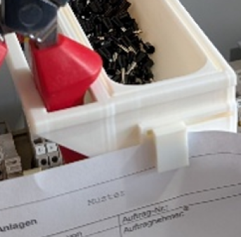 Bei dieser Version lässt sich die Materialbox herrausnehmen. So lassen sich auch unterschiedliche Materialien schnell und effektiv tauschen. Zusätzlich lassen sich 3 Schraubendrehr sowie diverse Zangen halten.